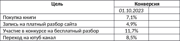 Конверсия измеряется путем отслеживания конкретных действий пользователей на вашем сайте. Под действиями могут пониматься клики по кнопкам, переходы по страницам, переходы в соцсети, копирование номера телефона и некоторые другие события.