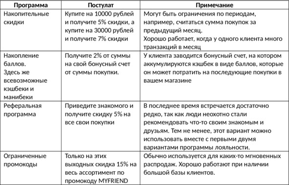 – Опишите, какой вы видите эту программу лояльности используя таблицу выше.