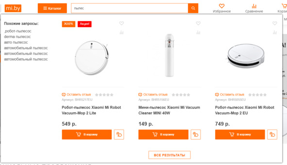 Важно, чтобы поиск работал без перезагрузки страницы и максимально быстро выдавал пользователю результаты. Чем дольше работает поиск, тем хуже его влияние на конверсию магазина.