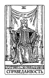 Другое название карты – Правосудие. Она символизирует кардинальную христианскую добродетель – справедливость. Космический, Божественный порядок отражается в устройстве общества. Справедливость указывает на равновесие энергий в мире.