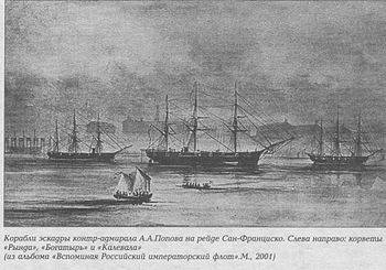 Контр-адмирал А.А. Попов опубликовал в газетах Сан-Франциско письмо, в котором говорилось, что русские корабли пришли в Америку не для участия в Гражданской войне американцев. Однако русский адмирал предупреждал экипажи кораблей южан, что мирное население города не защищено военными силами, и в случае нападения кораблей Конфедерации русская эскадра "единственно из человеколюбия" защитит мирных жителей города. Что и случилось вскоре, когда русские корабли отогнали от Сан-Франциско два капера южан – "Сэмтер" и "Алабама". Таким образом, русская эскадра встала на защиту мирных жителей от пиратских действий кораблей южан, которые быстро скрылись за горизонтом. Присутствие эскадры А.А. Попова внесло реальный вклад в безопасность Сан-Франциско от каперско-пиратских набегов южан-конфедератов.
