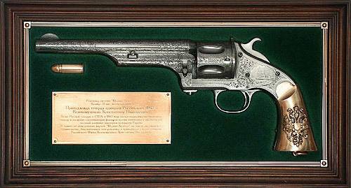 В июле-августе 1864 года эскадры С.С. Лесовского и А.А. Попова возвратилась в Россию. В связи с этим событием генерал-адмиралу Великому князю Константину Николаевичу американцы сделали необычный подарок – револьвер.