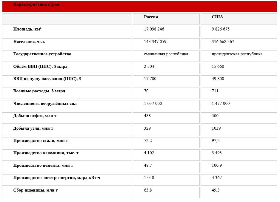 Итак: Россия и США – это два необычных, самобытных и крупнейших государства мира, во многом схожих по созданию и своему развитию. Они оказали и оказывают существенное влияние на развитие всего современного мира.