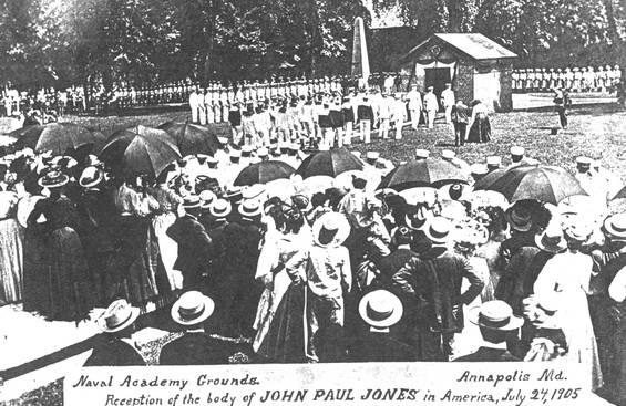 Через 100 лет свое последнее пристанище русский адмирал нашел в специальной усыпальнице на территории военно-морской академии в Аннаполисе. Его с высшими почестями торжественно перезахоронили здесь 24 апреля 1906 года в присутствии президента США Теодора Рузвельта, который в поминальной речи действительно назвал Пола Джонса «основателем военного флота США». У его могилы сегодня принимают присягу будущие морские офицеры. А в составе ВМС США имеется ракетный эсминец «Пол Джонс».