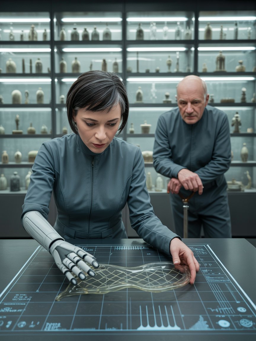 Александра опустила взгляд на свою правую руку – биомеханический протез, заменивший конечность после аварии на ранней экспедиции. Она помнила боль, помнила страх потери возможности заниматься тонкой исследовательской работой. Протез оказался совершеннее плоти – с датчиками, способными анализировать структуру материи на молекулярном уровне, с идеальной точностью движений, с отсутствием дрожи даже после многочасовой работы.