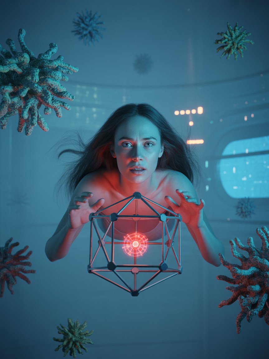 Она парила в центре главного экспериментального зала, окруженная голографическими проекциями, мерцавшими в полумраке. Невесомость делала её длинные темные волосы похожими на щупальца глубоководного существа. Морщинка между бровями обозначилась резче, когда очередная серия данных высветилась тревожным алым.