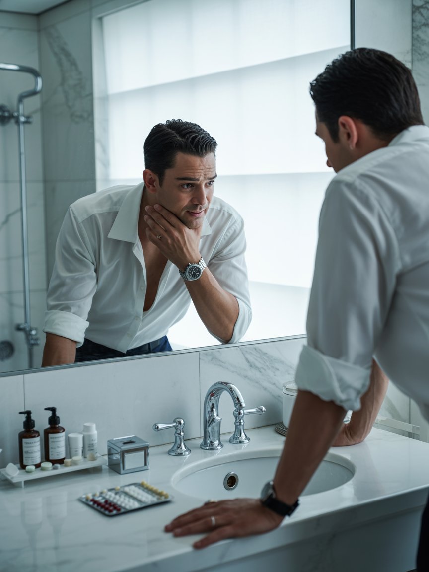 Глаза, красные и опухшие, смотрели с такой усталостью, будто видели все войны человечества лично. Щетина придавала лицу небрежный вид, который мог бы сойти за намеренно модный, если бы не ощущение, что я недавно восстал из могилы. Волосы торчали во все стороны, словно я пытался стать панком, но не хватило решимости.