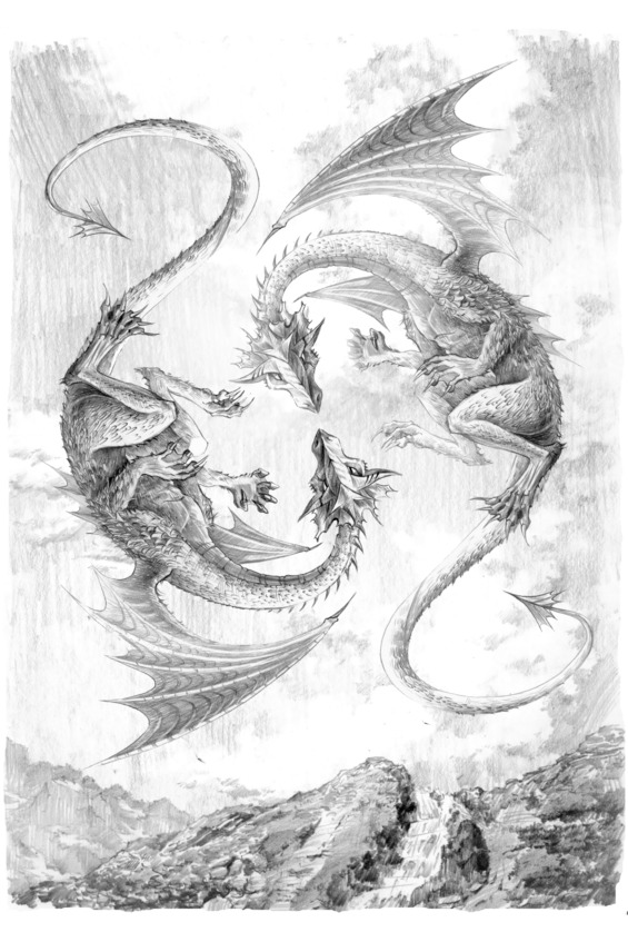 Солнце клонилось к закату. На фоне багрового неба Туола заметила странное облако, которое то опускалось к земле, то поднималось. Пытаясь понять, что это, королева двинулась к нему. Вскоре она могла рассмотреть отдельные детали и поняла, что наблюдает за сражением двух зеркальных драконов.