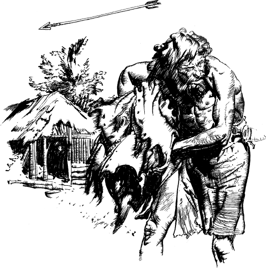 На третий день Следопыт ушел в лес на рассвете. Когда ближе к вечеру он вернулся, Кудряшка сообщила ему, что Кривой Рот забрал весь ее запас нитей, который был на веретене, три бронзовых браслета и изогнутый нож с рукоятью из твердого дерева, которым Следопыт разделывал добычу.