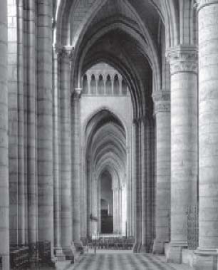 Интерьер собора по-особому темен и полон мистики. В полумраке с трудом угадываются огромные колонны с искусно выполненными каннелюрами, которые поднимаются, соединяясь с нервюрами свода. Здесь царят витражи. Именно они превращают собор в христианские небеса. Огромные оконные проемы, в которые помещены витражи, подобны глазам, смотрящим в другой мир. Или же через эти отверстия иной мир посылает в святилище отражения своих лазури и огня. Есть очень немного соборов, в которых символизм католической церкви был бы представлен так широко. История церковная и история светская как история королей, стоящих в арках, разворачиваются перед глазами зрителей на сводах боковых нефов. Выше, под окнами центрального нефа, сияют христианские добродетели, святые, девы с копьями и зажженными факелами. Это церковь торжествующая и церковь воинствующая. Наконец, гигантская роза фасада освещает собор всеми цветами радуги. Это мистическая роза, символ вечности.