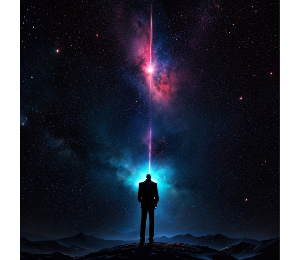 Рисунок 56. Гармоничное представление нейросети о философском противостоянии человека, бога и космоса (мы все на одной линии бытия)