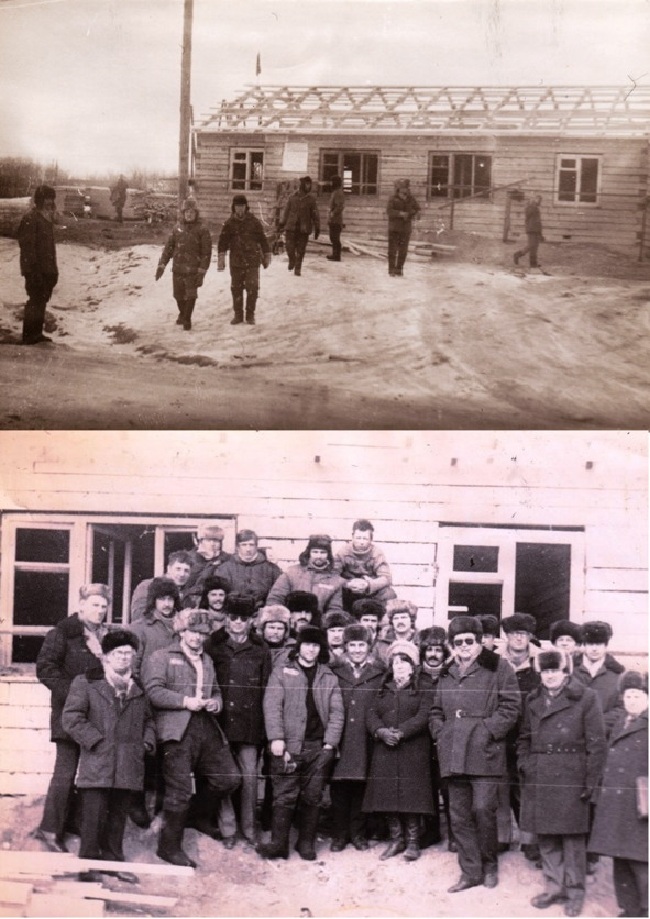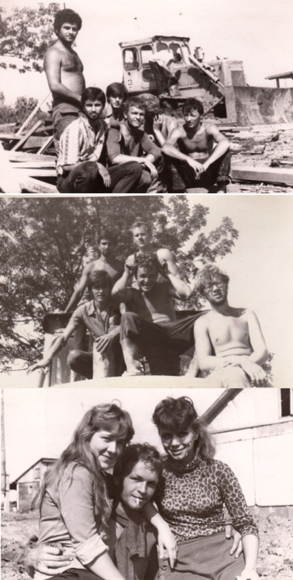 Строительство домов в Лермонтовском совхозе, 1985 г. На фото внизу в центре – первый секретарь Хабаровского крайкома партии Алексей Климентьевич Чёрный. Фото из архива автора