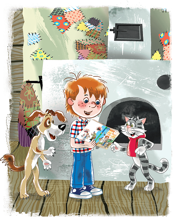 – Это, наверное, мой профессор! – кричит кот. – Сёмин Иван Трофимович! У него ещё была жена, двое детей и бабушка с веником. И он всё словарь составлял «Русско-кошачий».
