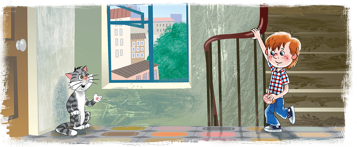 А однажды было так. Идёт себе дядя Фёдор по лестнице и бутерброд ест. Видит – на окне кот сидит. Большой-пребольшой, полосатый. Кот говорит дяде Фёдору: