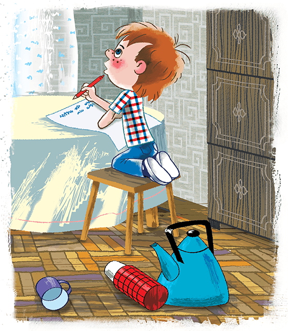 Утром папа с мамой на работу ушли. Дядя Фёдор проснулся, сварил себе каши, позавтракал с котом и стал письмо писать.