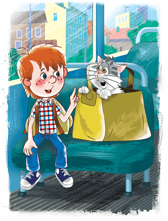 Дядя Фёдор сел в автобус и поехал. Ехать было хорошо. Автобусы в это время за город совсем пустые идут. И никто им не мешал разговаривать. Дядя Фёдор спрашивал, а кот из сумки отвечал.