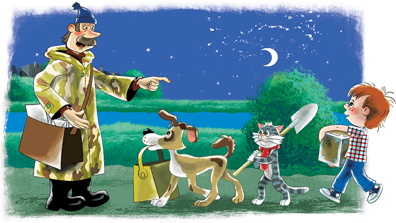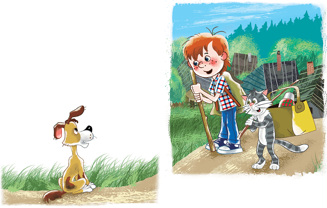 – Возьмём, – отвечает дядя Фёдор. – Втроём веселее. Как тебя зовут?