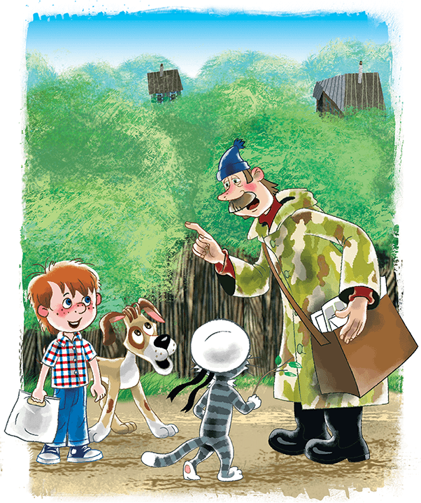 А дядя Фёдор на почту пошёл письмо писать на завод, чтобы ему трактор выслали.
