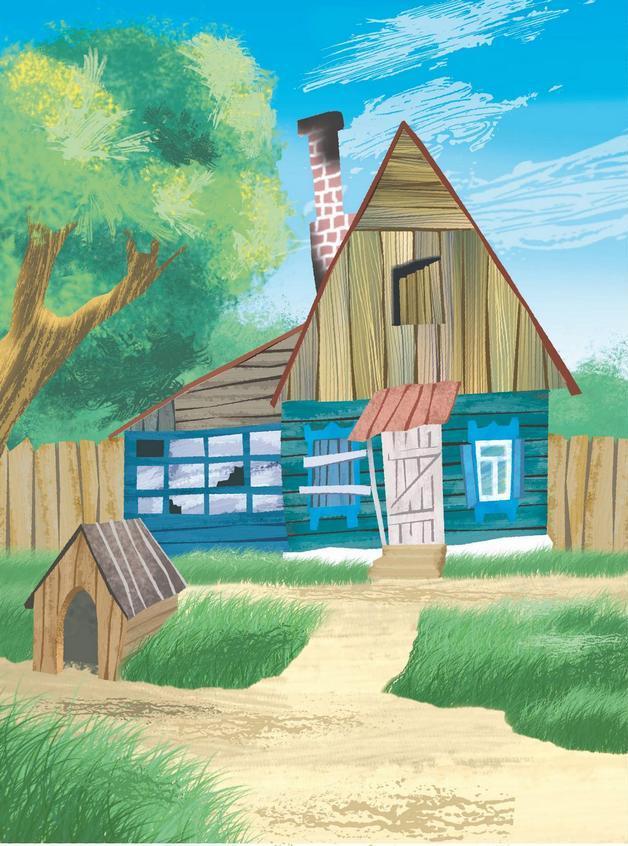 Достал он косу и пошёл сено на зиму запасать. А корова к окну подошла. На окне занавесочки были. Она взяла и все занавесочки съела. И все цветы, которые в горшках стояли. Пёс увидел и говорит: