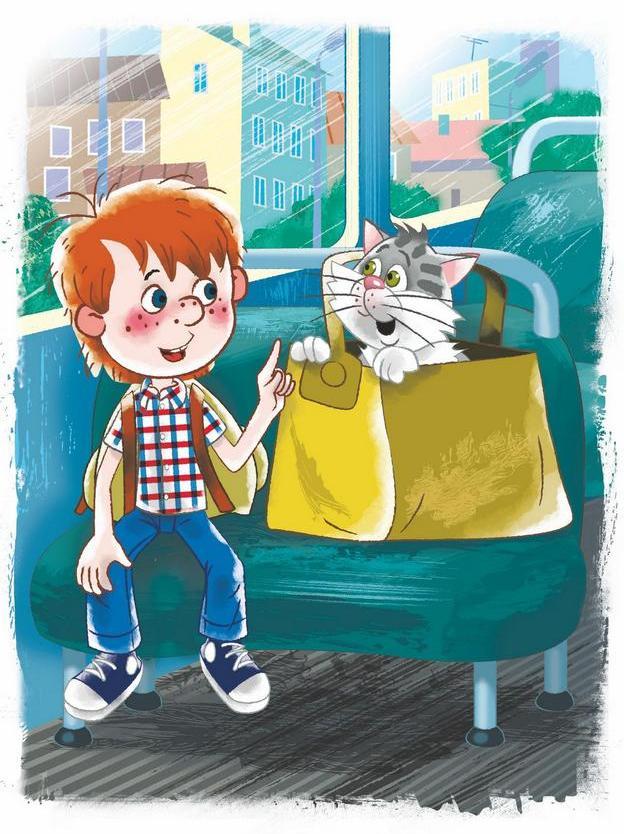 Дядя Фёдор сел в автобус и поехал. Ехать было хорошо. Автобусы в это время за город совсем пустые идут. И никто им не мешал разговаривать. Дядя Фёдор спрашивал, а кот из сумки отвечал.