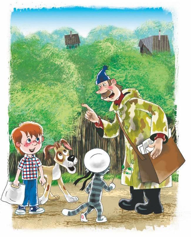 Взял кот деньги и пошёл за коровой. А дядя Фёдор на почту пошёл письмо писать на завод, чтобы ему трактор выслали.