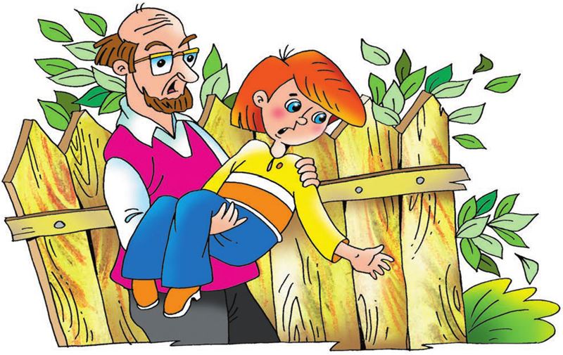 Кот Матроскин сразу на крыше оказался. А профессор Сёмин взял дядю Фёдора на руки и стоит бледный, прижавшись к забору. Ещё бы: столько килограммов говядины во все стороны летают, да ещё с такими рогами!