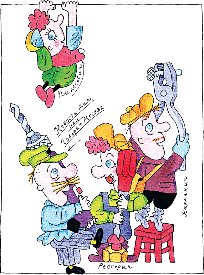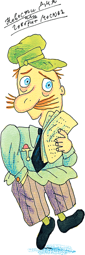 И в самом деле, из приёмника выбрался сердитый и расстроенный Новости Дня. После перевозки его приёмник барахлил. Хозяева неправильно развесили антенну и совсем забыли как следует настроить звук.