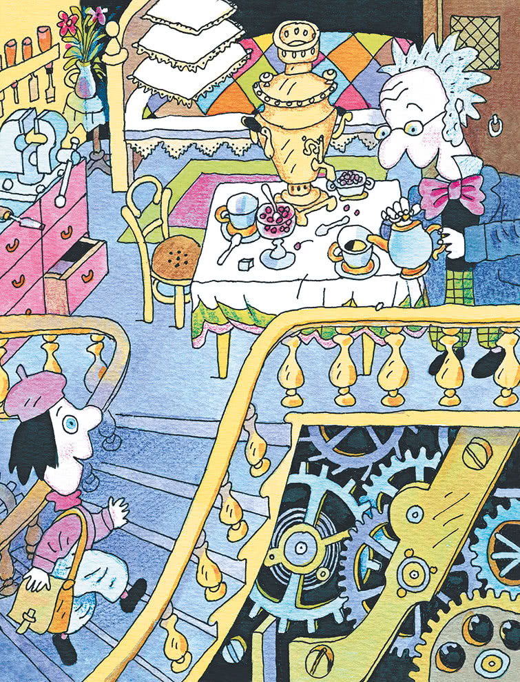 Лесенка привела их к большой площадке-комнате. Там посредине стоял стол с самоваром.