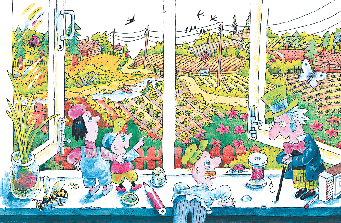 Когда хозяева ушли купаться, Холодилин, Буре и мальчик выбрались из холодильника и залезли на подоконник природу смотреть.