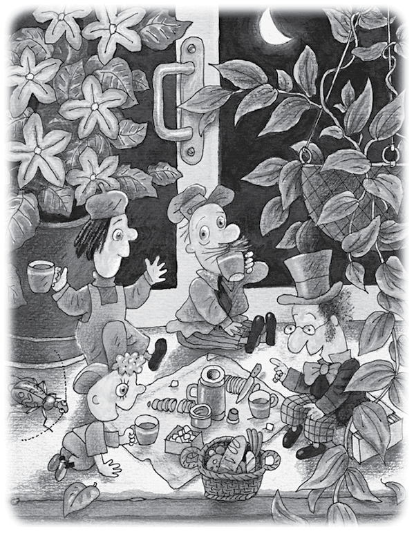 Холодилин вынес корзину с едой, и по плетям традесканции все забрались на подоконник. Новый мастер разлил чай из термоса по кружкам и сказал: