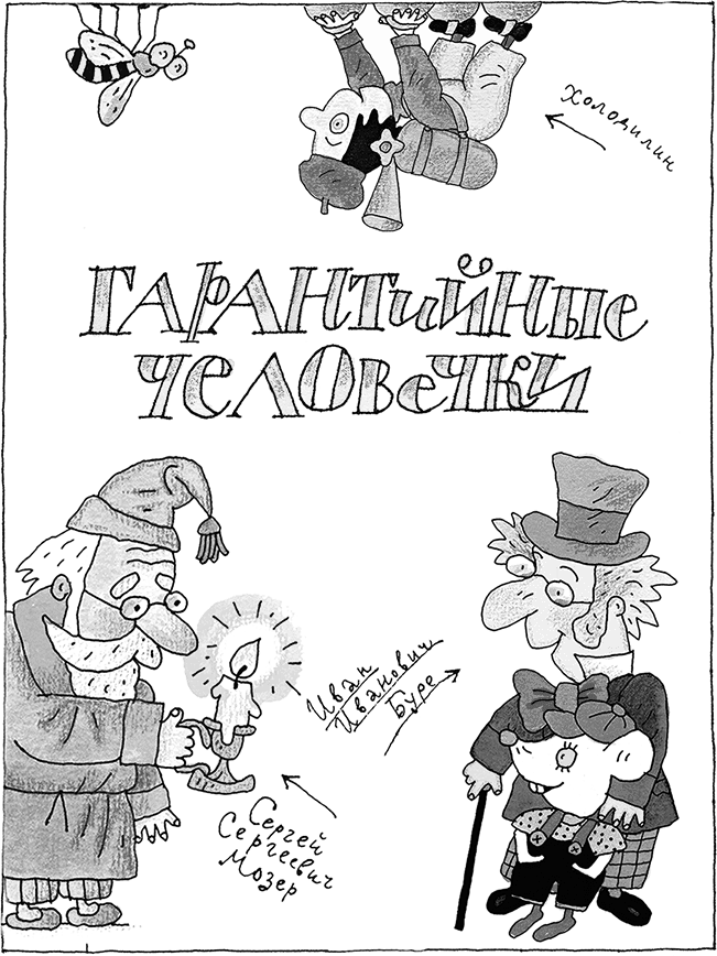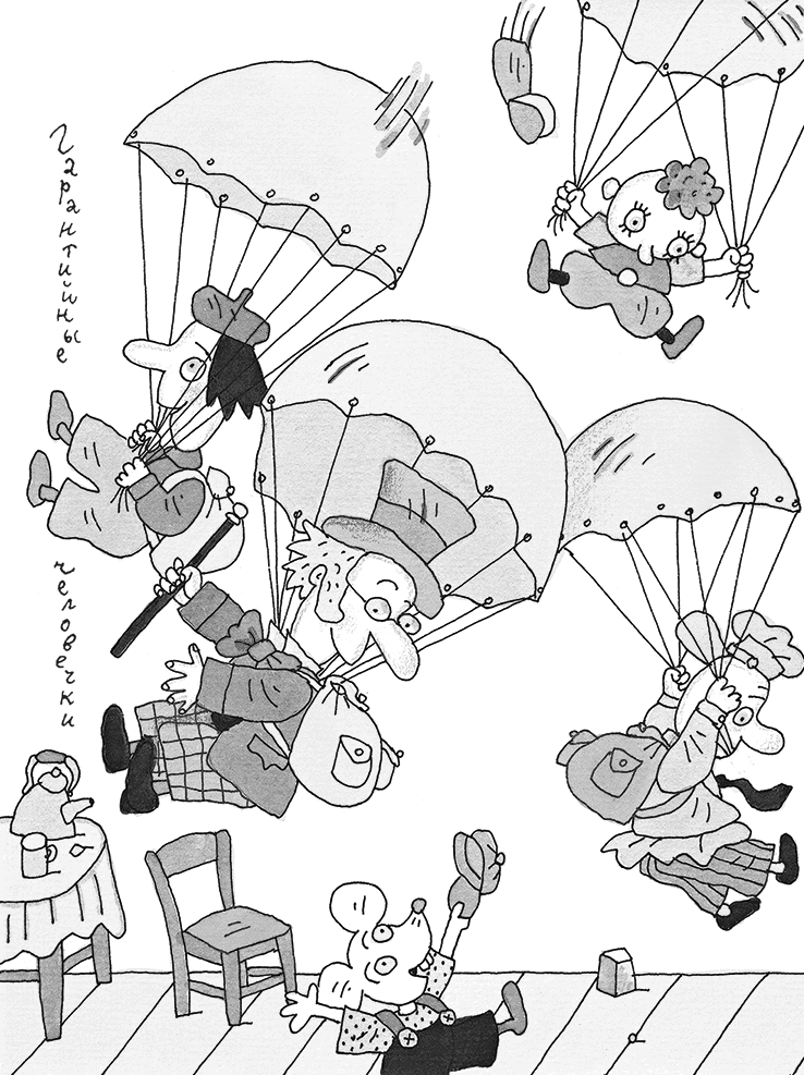 И тотчас в холодильнике, в часах и в радиоприёмнике раскрылись двери, и на пол стали спускаться гарантийные человечки. В руках они держали фонарики.