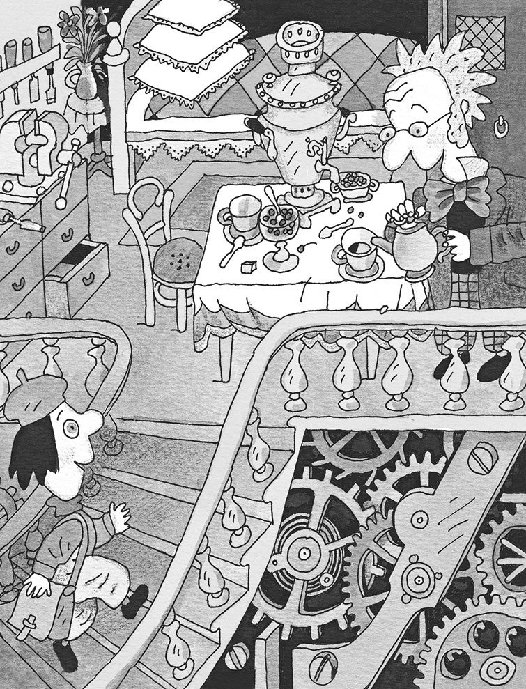 Крутились и покачивались колёса, жужжали блестящие шестерёнки, и переваливалась с места на место качалка маятника.