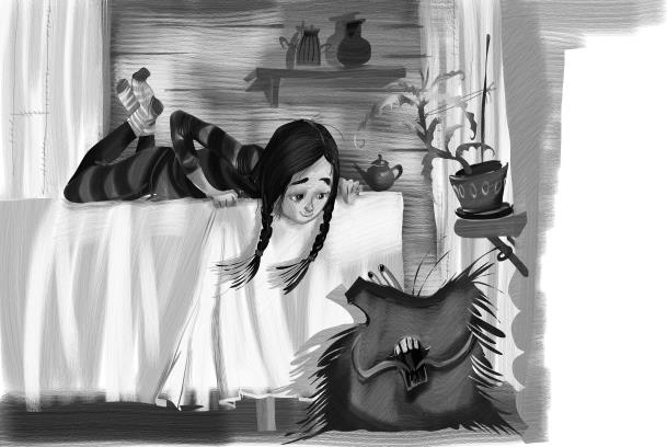 Он подошёл к ножке стола. Девочка протянула вниз руку и коснулась его. Он был твёрдый, словно каменный, и прохладный.