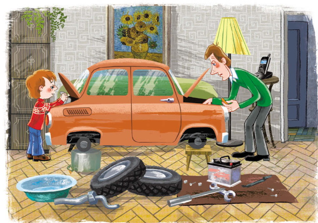 – Ой, – говорит папа, – это же умственно отсталый автомобиль. Его сразу устарелым изобрели. Это авточудо не для езды, а для ремонта предназначено.