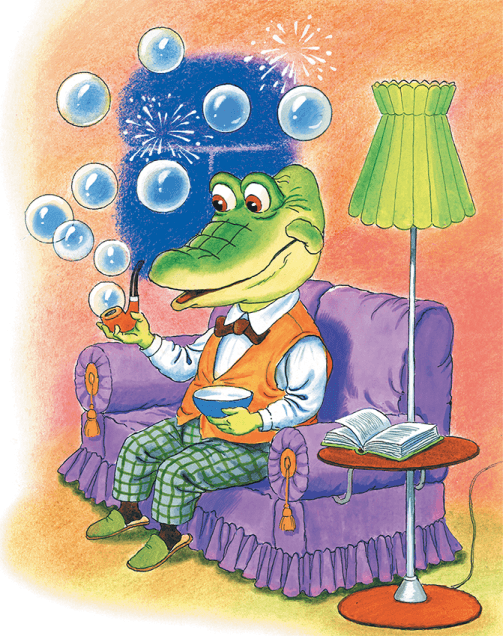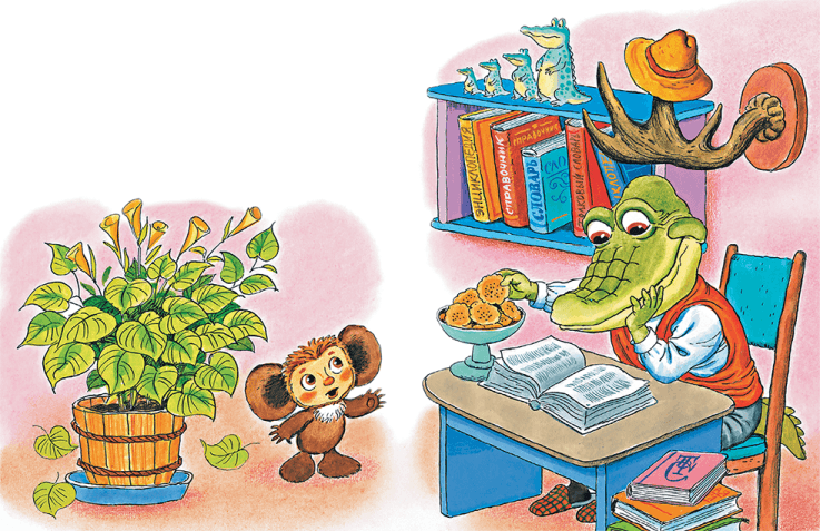 На следующий вечер Чебурашка первым пришёл к крокодилу. Гена в это время читал. Он очень любил читать точные и серьёзные книги: справочники, учебники или расписания движения поездов.