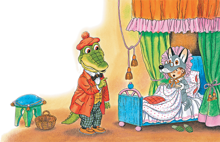 Дальше он, как положено, прибежал к домику, съел бабушку Красной Шапочки и лёг вместо неё в кровать.
