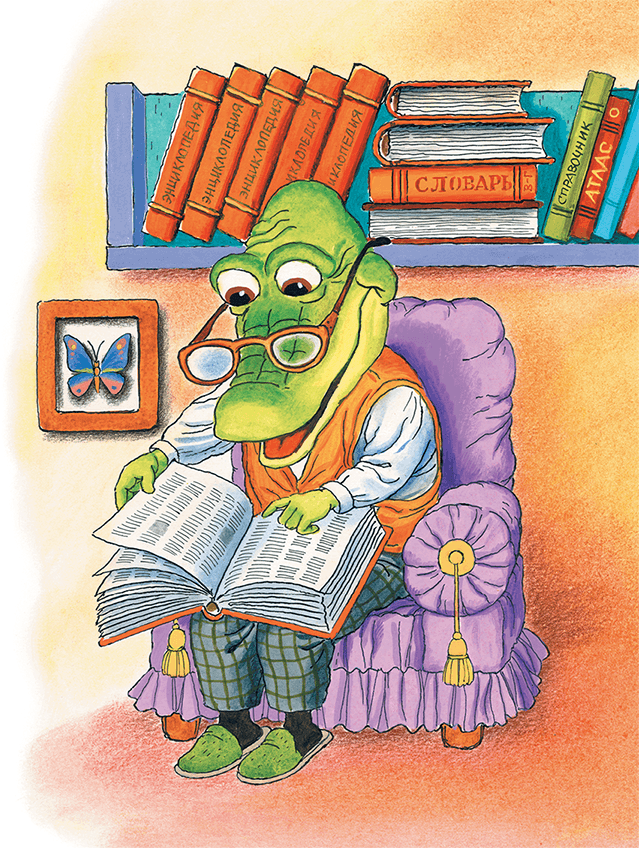 На следующий вечер Чебурашка первым пришёл к крокодилу. Гена в это время читал. Он очень любил читать точные и серьёзные книги: справочники, учебники или расписания движения поездов.