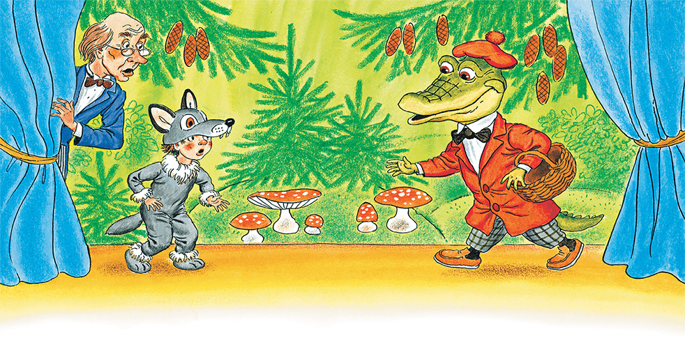 – Спектакль будет! – гордо произнёс крокодил. – Я заменю тебя. (Когда-то в юности он занимался в театральном кружке.)
