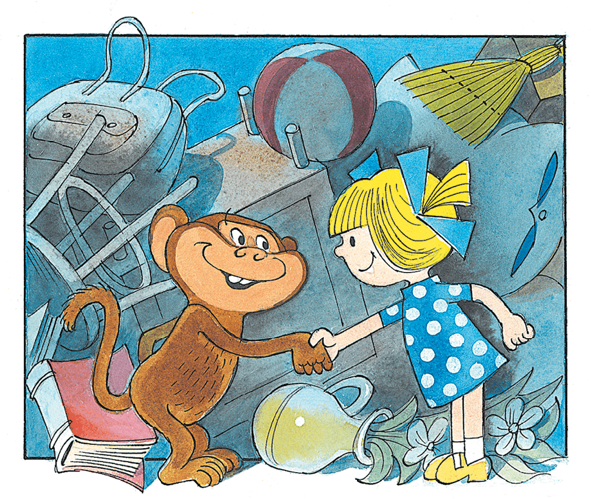 Обезьянка всё любила вывинчивать. Она у телевизора ножку вывинтила. Телевизор как упадёт! Папа как рассердится!