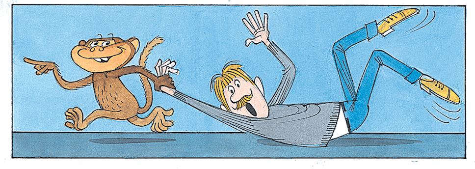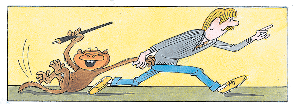 И потащил обезьянку в угол ставить. А она подумала, что с ней так играют. И папу в другой угол повезла. Она была очень и очень сильная.