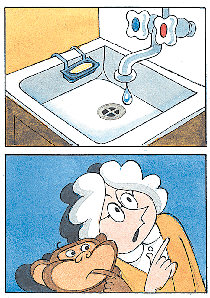 – Давай, Анфиса, лучше я тебе про наш дом расскажу. У нас в квартире много опасностей. Это краны с горячей и холодной водой. Их надо обязательно закрывать. А то нас затопит. Это спички и газ. От них бывают пожары и угорания. А в этой розетке живёт сердитое электричество. Оно ужасно дерётся и кусается, если не знать, как с ним обращаться.