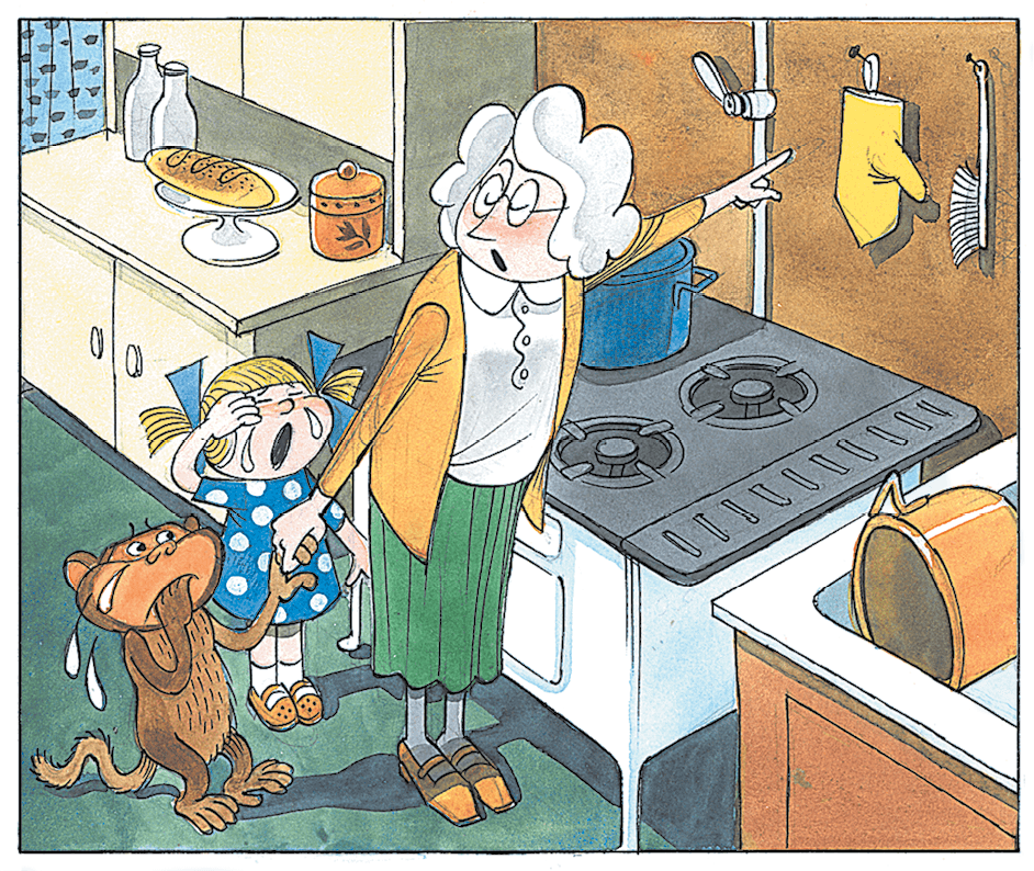 – У-у-у! – И как схватит горячую кастрюлю на плите! И как заплачет!