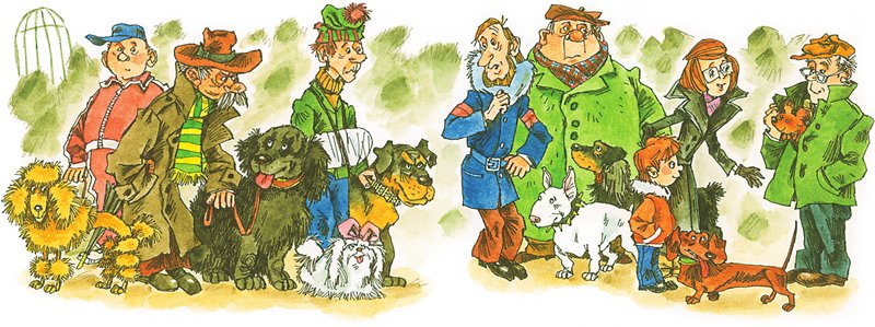 Там много было собак всех сортов и всех размеров. Собаки прыгали, лаяли и скулили.