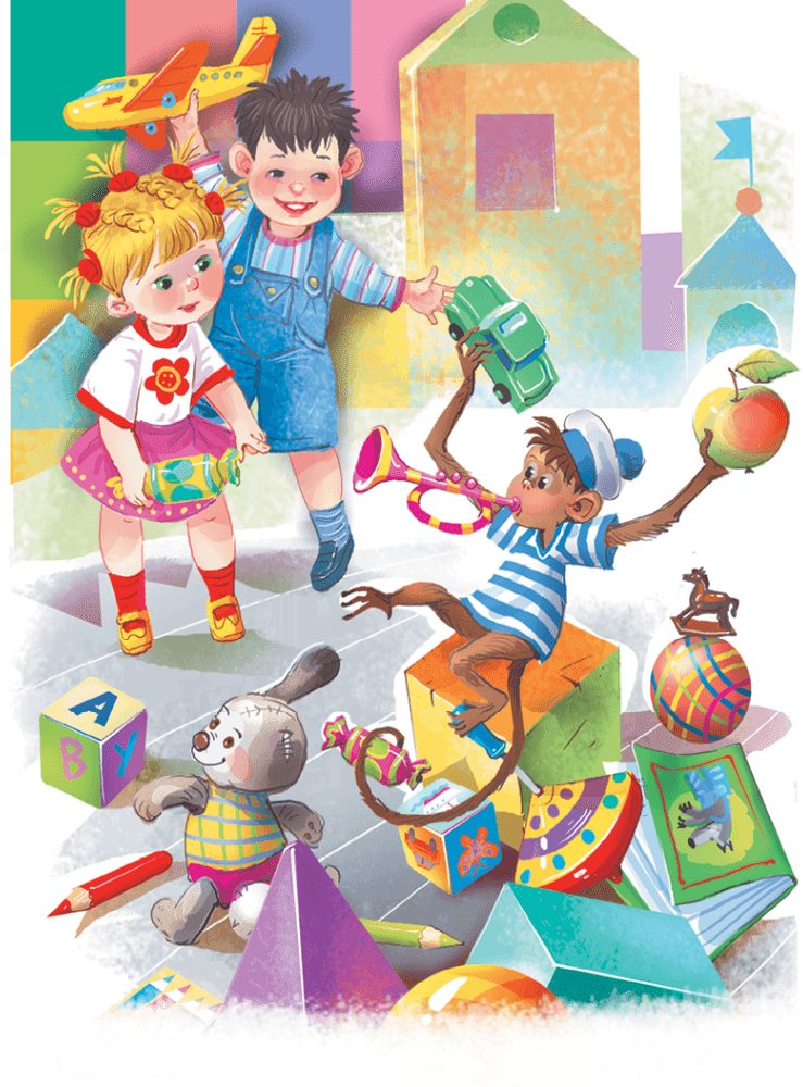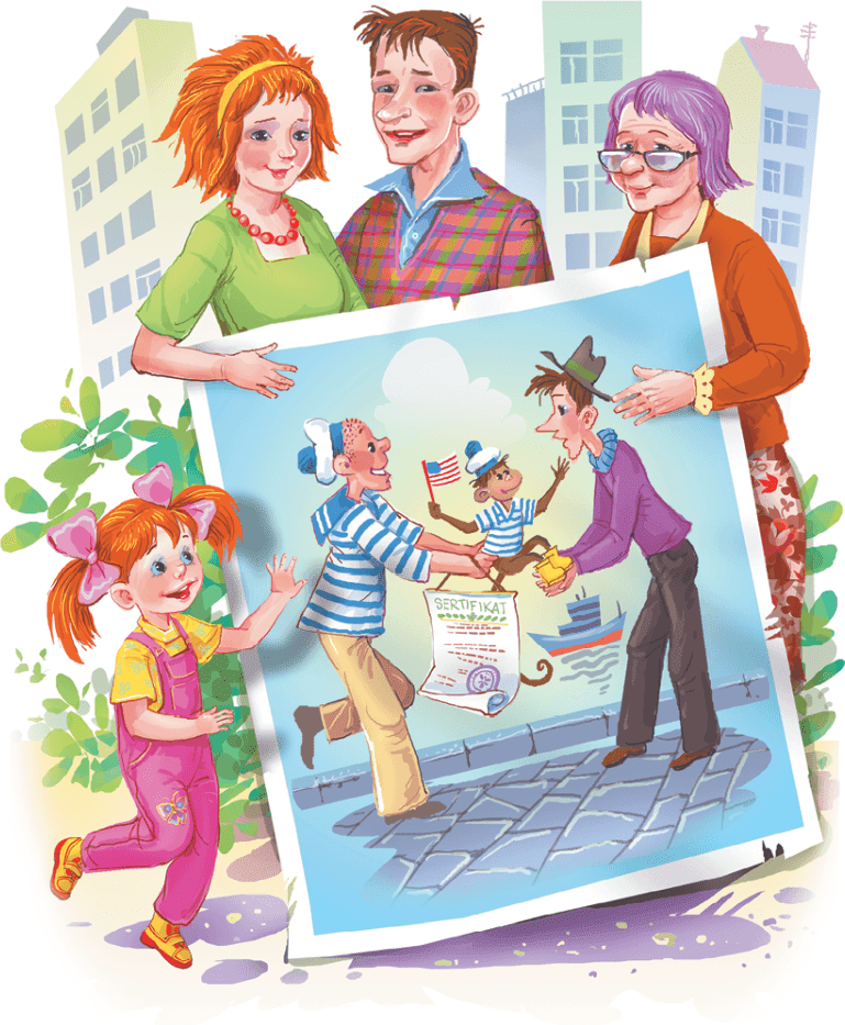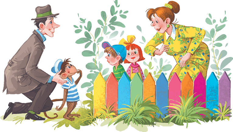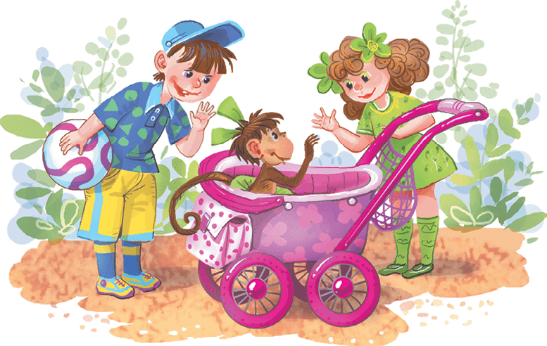 Папа пришёл домой, а Веры и бабушки нет. Они в песочнице во дворе играли. Папа обезьянку оставил и за ними побежал. Привёл их домой и говорит: