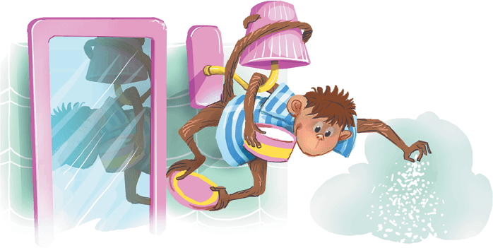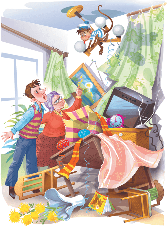 И точно: все табуретки, все столы и даже телевизор – всё в квартире вверх ногами поставлено. А на люстре обезьянка висит и электрические лампочки облизывает.