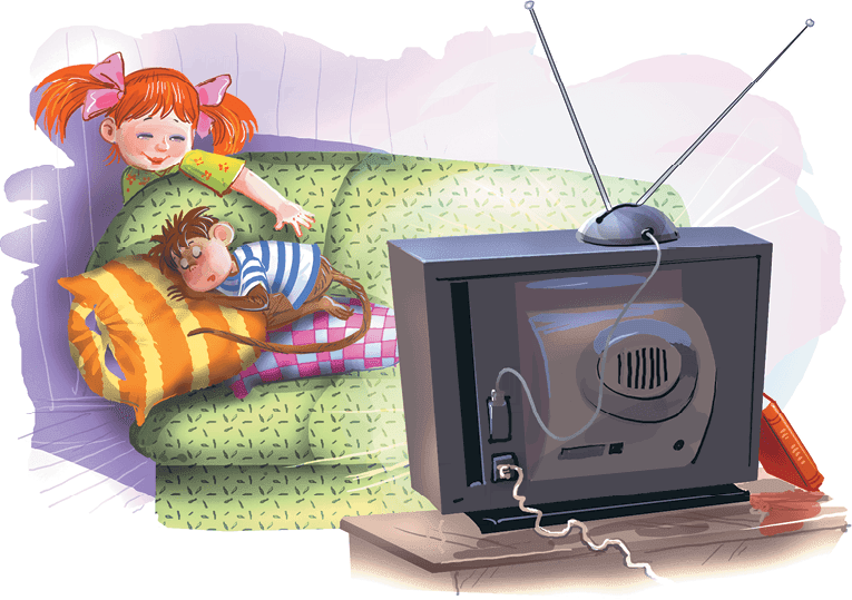 Папа её из стула достал и на диван перед телевизором посадил. Тут и мама пришла. Мама пришла и сразу сказала: