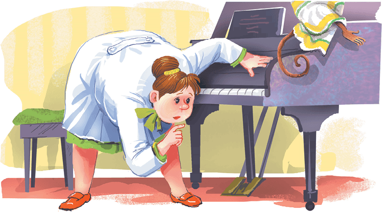 «В чём дело? – думает Елизавета Николаевна. – Может быть, в рояле мышка поселилась? И по струнам стучит?»