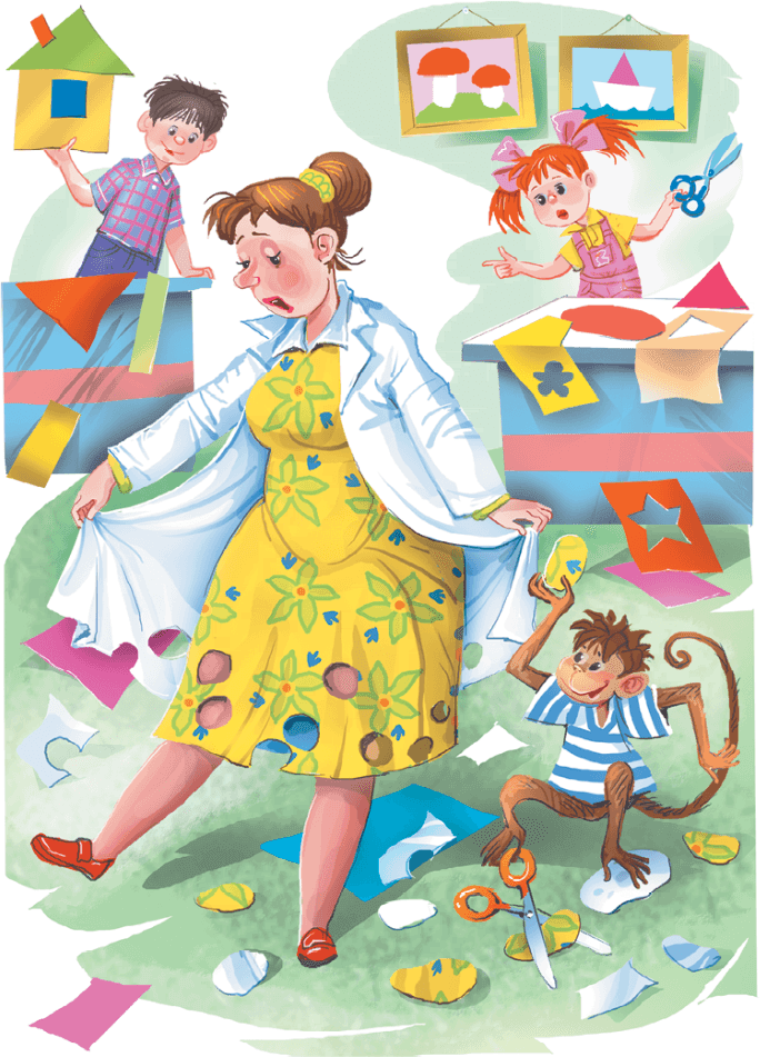 Елизавета Николаевна даже успокоилась. Только рано. Потому что после полдника было художественное вырезание. Елизавета Николаевна сказала ребятам: