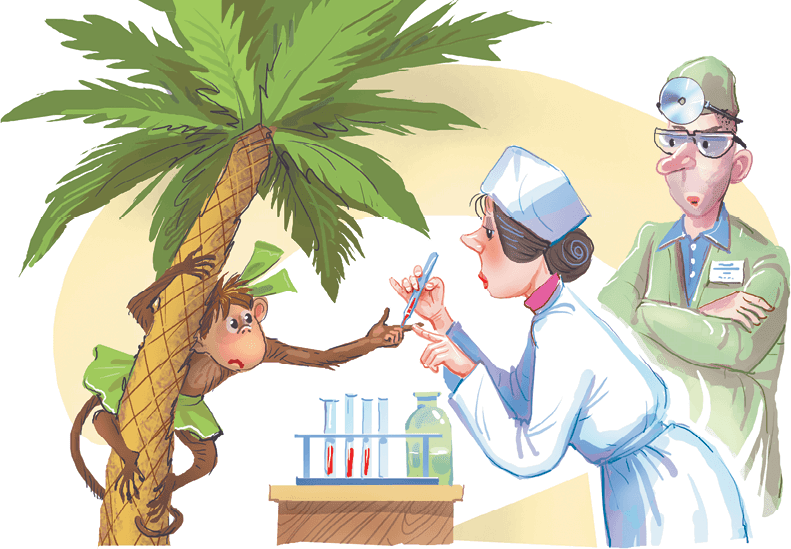 – Зачем вы к нам обезьянку привели? Она заболела?