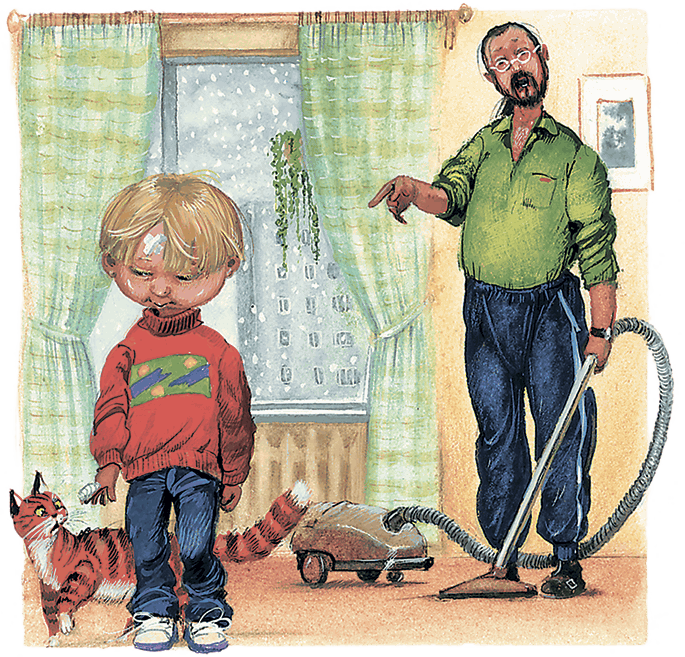 Решили по-хорошему договориться. Яшу от пылесоса отвязали. А он обещал больше никуда не лазить. Папа сказал: